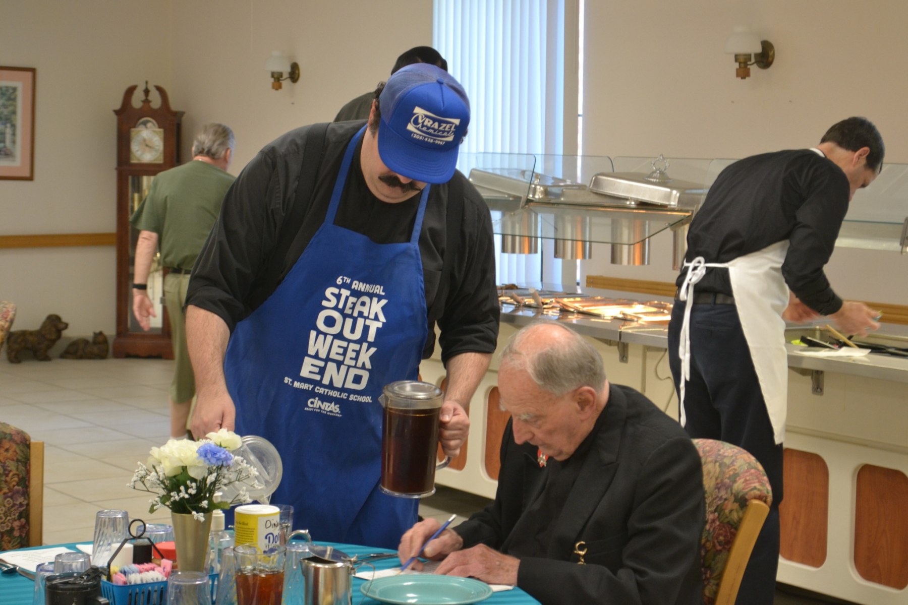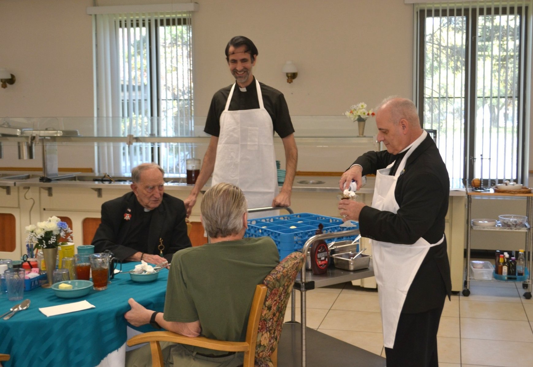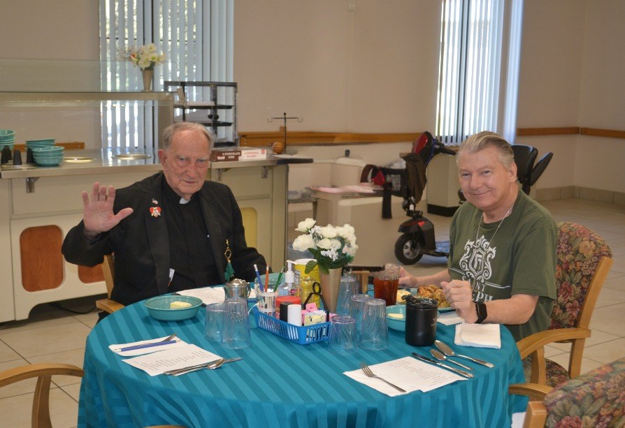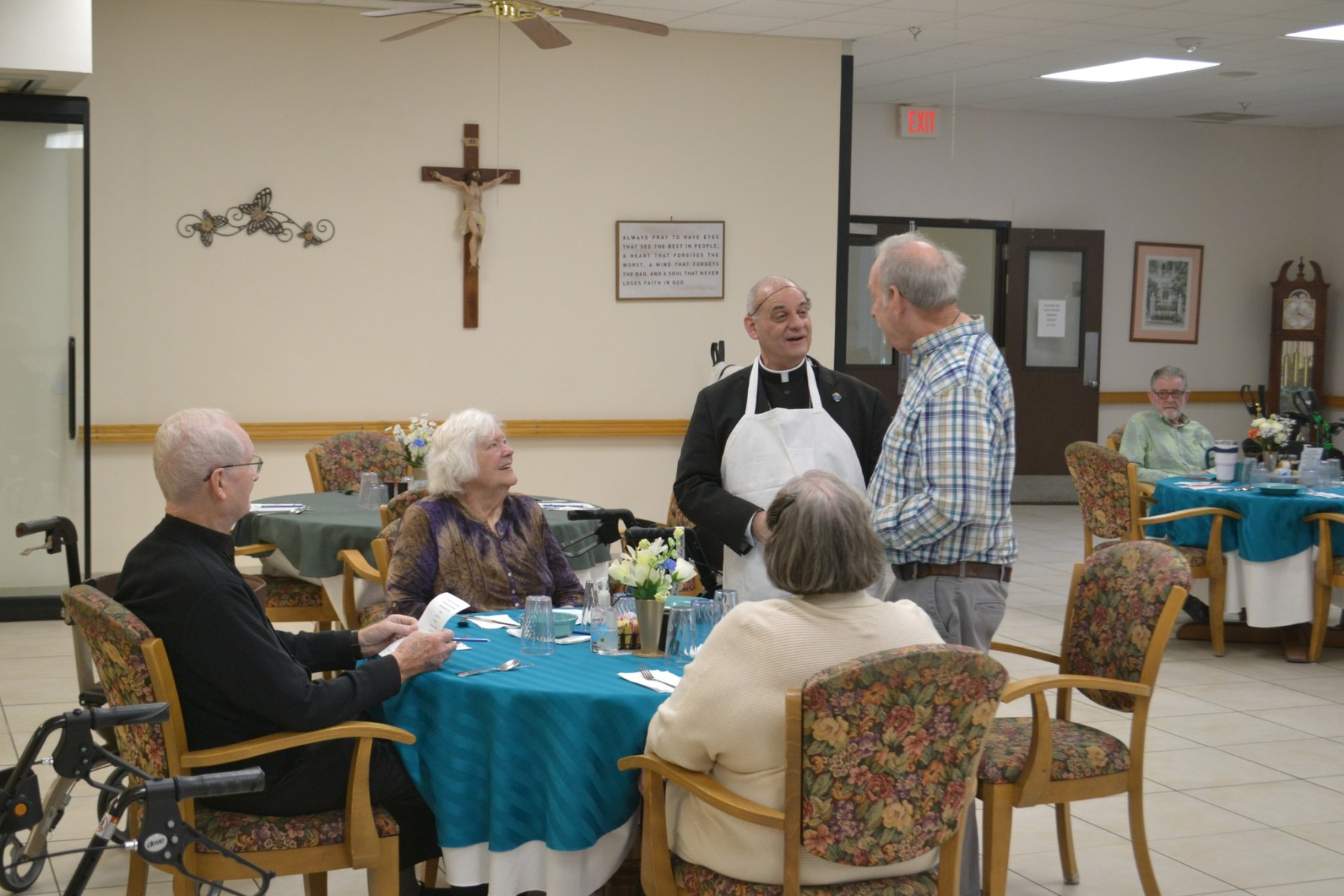 Happy Feast of St. Joseph Day! And what a special day it was! We were honored to have Archbishop Rivituso along with Fr. Pat Arensberg (Corpus Christi Parish), Fr. Victor Ingalls (Prince of Peace Parish), Fr. Patrick Driscoll (St. Dominic Parish), Fr. Stephen Vrazel (St. Mary Parish), and Fr. Fred Boni (St. Catherine of Siena Parish) come to Sacred Heart Residence and serve lunch to our Residents to celebrate the Feast of St. Joseph.