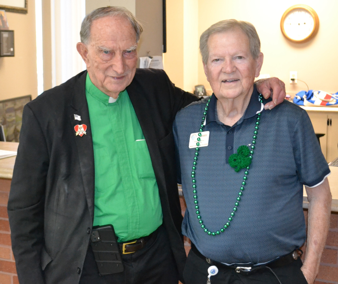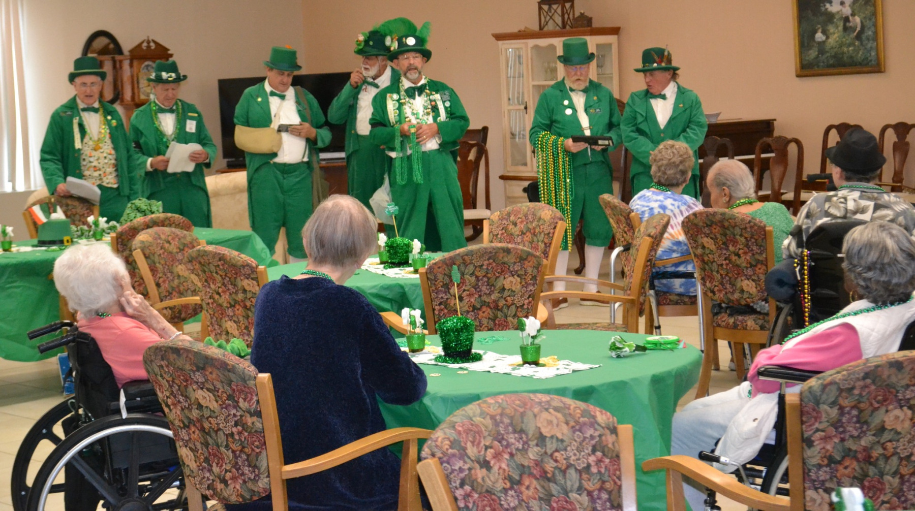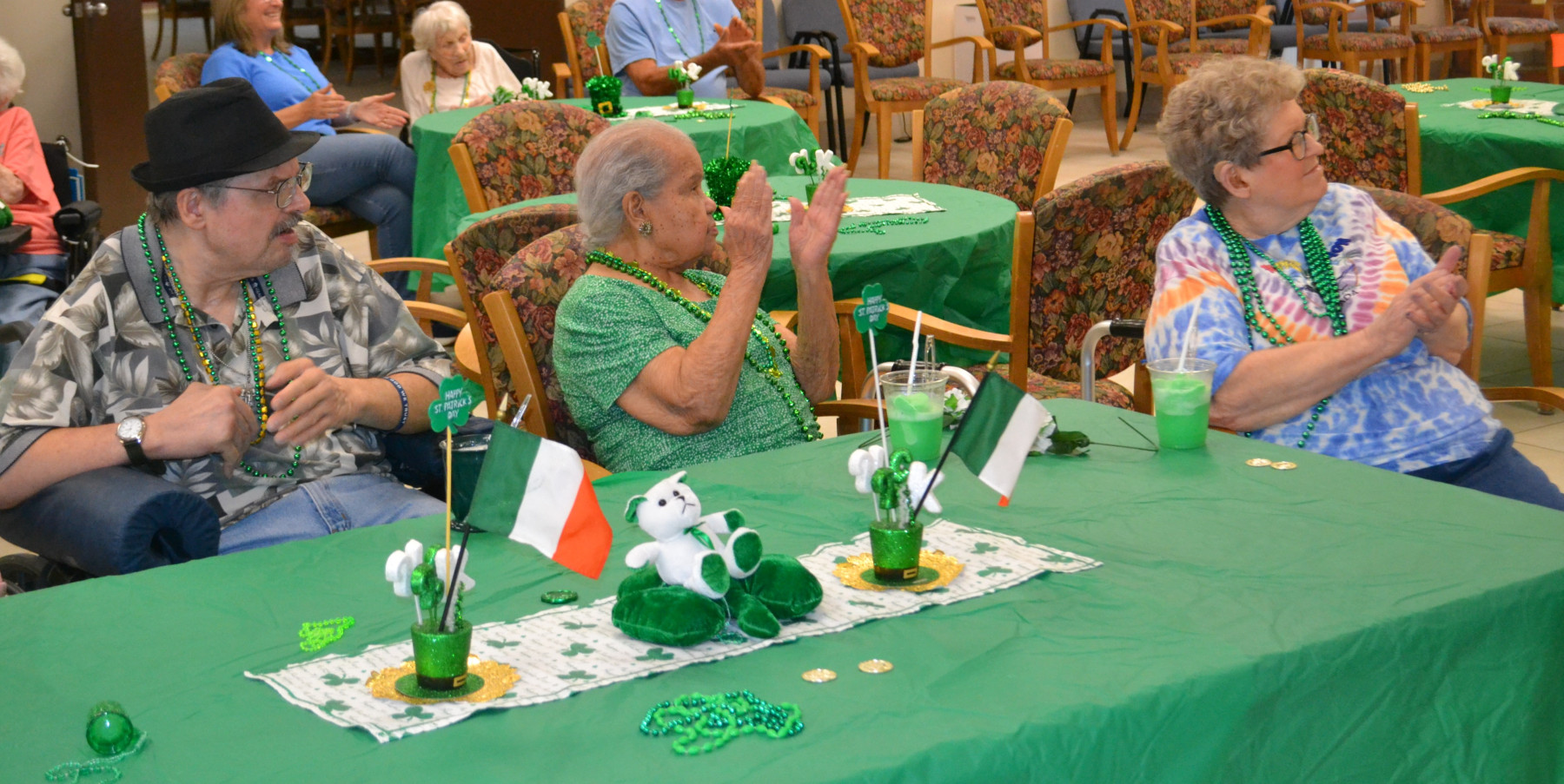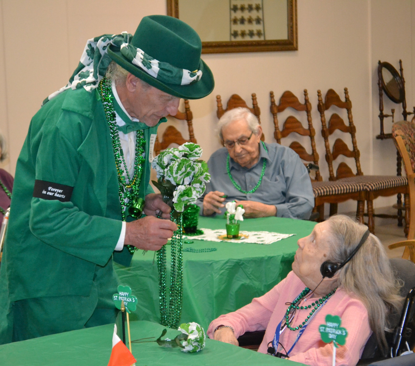 Residents and staff enjoyed getting into the spirit of St Patrick’s Day at Sacred Heart Residence! Residents enjoyed an Irish social with a special visit from a local organization, the Friendly Sons of St Patrick. The “leprechauns” visited with the residents, told stories, and sang Irish songs! And our staff made sure to not miss out on all the fun and showed their Irish spirit by wearing green on St. Patrick’s Day!